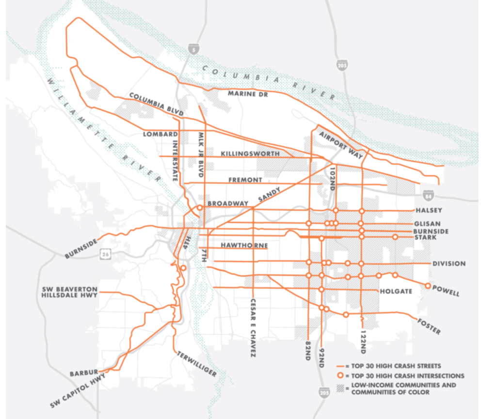 Almost all of the “high crash” streets are designated as a corridor by Metro, and are likely designated as a freight movement road as well by the pertinent government agencies. A good main street requires a lot of pedestrian activity, and by continuing to designate the best main streets as “major transportation routes… for goods”, Metro will make it practically impossible to ever fully pedestrianize them.