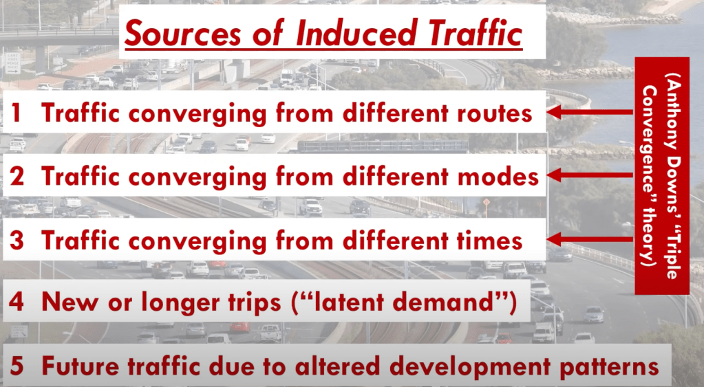 I’ve written some previously about transit existing to serve automobile related concerns but I want to talk about easing traffic congestion with transit specifically. Because I don’t think it works. In the US, where automobiles have just about saturated the market there is a functionally infinite demand for road space. Urbanists the world over have spilled ink about how freeway expansions don’t fix traffic in the long run. But to get to why I think transit doesn’t solve traffic, we need to understand a concept called “Induced Demand“.