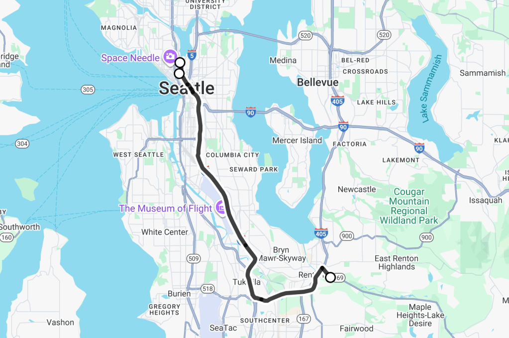 Of the 30 total stops served, just seven offer faster travel times than the existing suburban buses4. Of these, the one with the most justifiable existence on transportation planning chops is the Renton one. Of the major suburban cities in the Seattle area, it and Burien are the only two that lack a direct Sound Transit connection to downtown Seattle.