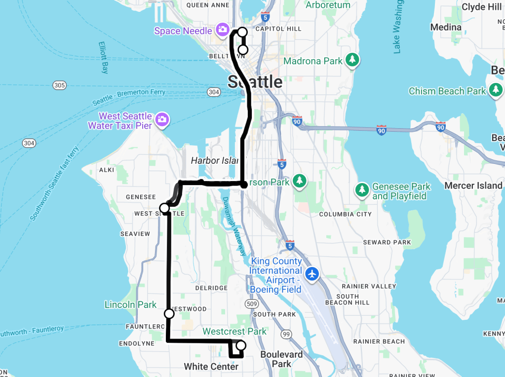 But the real issue at hand is the commuter buses which are slower than existing express and commuter buses run by the various Seattle area agencies. The worst offender here is a White Center – West Seattle service that makes three stops, each of which is slower than taking the corresponding Metro route.