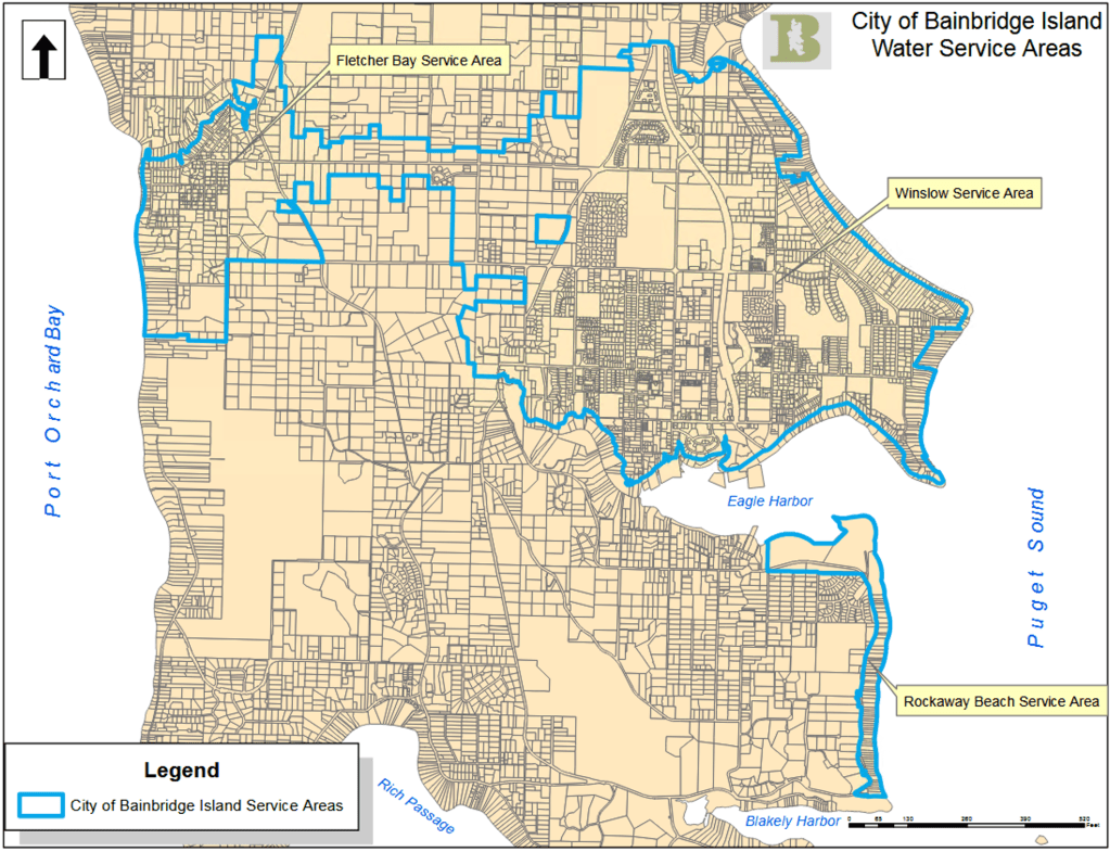 The first is obvious: this housing development is in downtown Bainbridge, and is thus served by the Bainbridge water utility. This doesn’t excuse the development from being party to the generalized water situation on the island, but it does make you wonder why the author would bother talking about how homes outside the downtown core rely on private wells.
